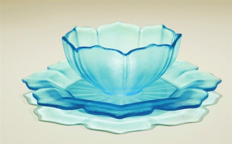 當然,它的不凡更來自于它的創意源頭——甘肅省博物館展廳里那只造型華美、完整成套、顏色高貴的蓮花形玻璃托盞。