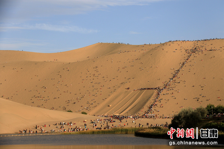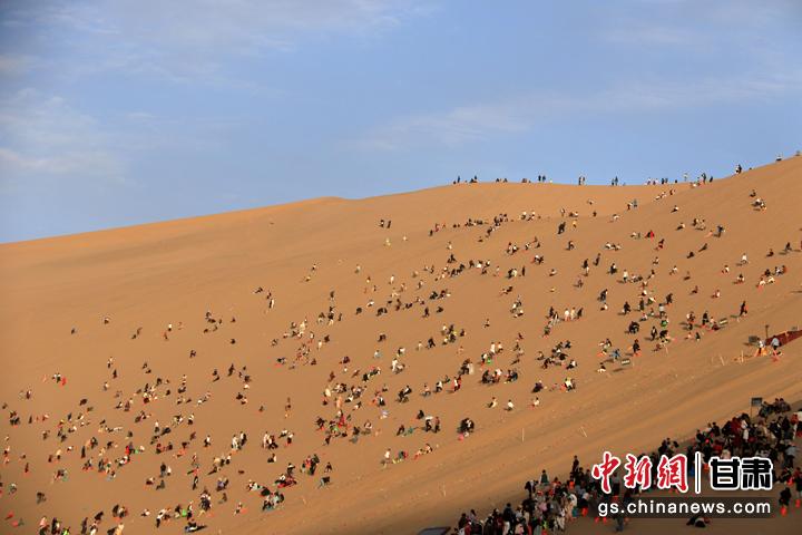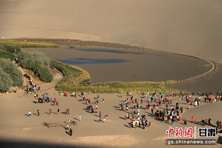 今年以來,甘肅省敦煌市旅游市場持續火熱。當地著名景點鳴沙山月牙泉在今年中秋國慶假期期間,累計接待游客首次突破300萬人次,比2019年同期增長35.5%,創歷史新高。(張曉亮 習剛)