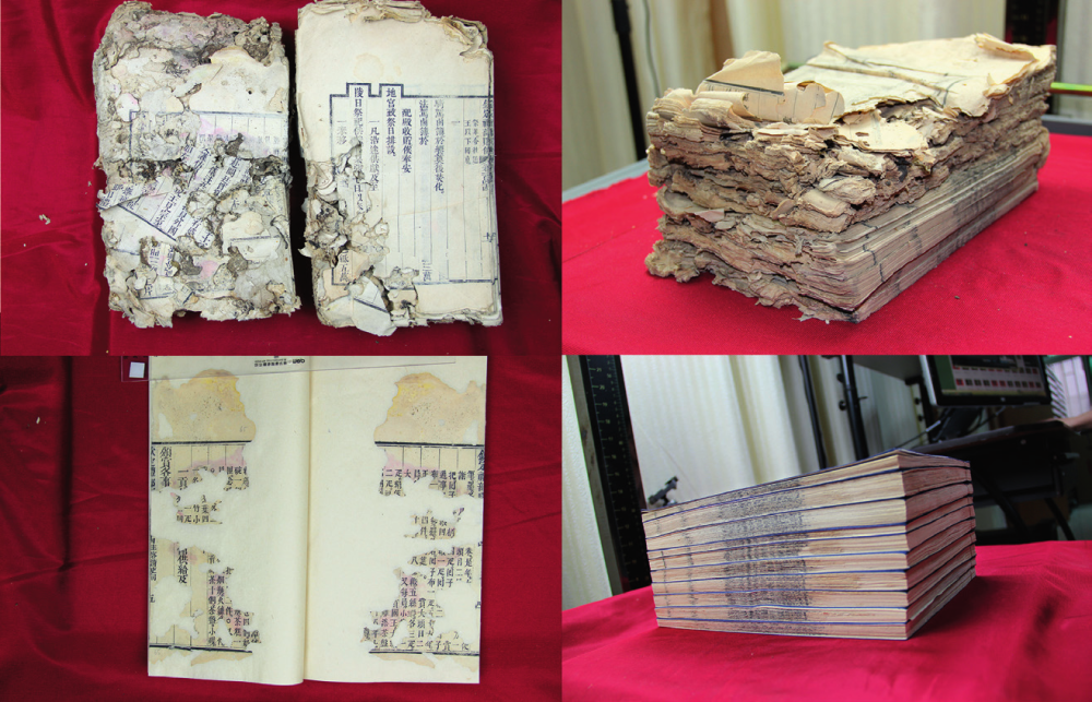 上面2張圖為甘肅省圖書館藏《欽定禮部則例》修復前的畫面;下面 2 張圖為甘肅省圖書館藏《欽定禮部則例》修復后的畫面 甘肅省圖書館供圖