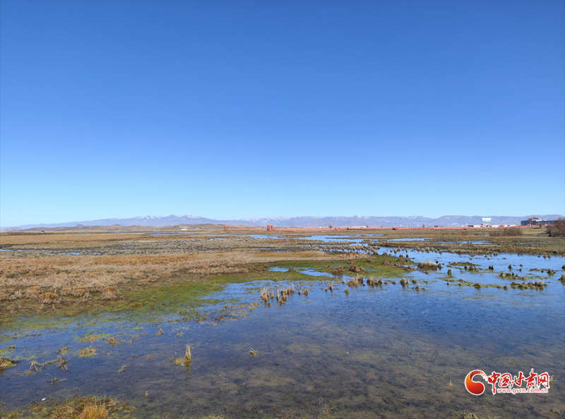 秋日的河曲馬場水天一色,碧波蕩漾,草原空明幽邃,一望無際。