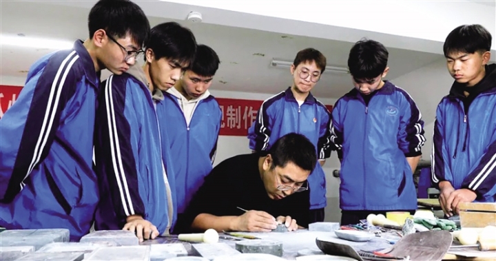 著眼于促進洮硯產業長期健康發展,讓絕技不絕、人才不斷,瓜州縣突出分層培育,采用“工藝美術大師—鄉村工匠—培育對象”梯次培養模式,開展“鄉村工匠”教學指導,為洮硯產業儲備好鄉村實用人才。通過校企合作方式,把“洮硯上的絲路文化非遺項目”引入瓜州冶金中等專業學校課堂,探索出非物質文化遺產校園傳承的新模式。開展“大手牽小手,傳承洮硯非遺文化”活動,讓中小學生近距離感受洮硯雕刻中蘊含的豐富文化和精神內涵,激發傳承優秀民族文化的熱情。