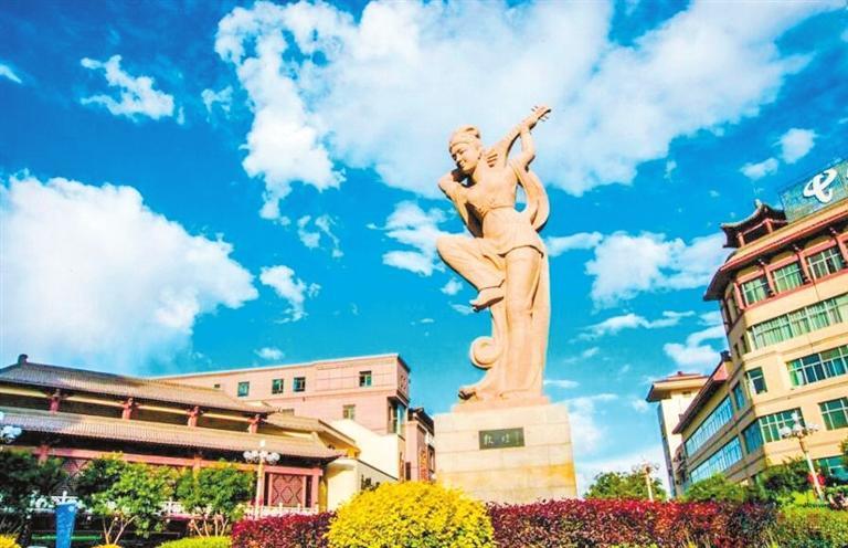 今天,當(dāng)我們漫步敦煌街頭,那耀眼的城市中心雕塑高聳肅穆,神采奕奕,深情注視著東方,用一種開放、包容的姿態(tài)歡迎每一位走進(jìn)敦煌的貴客。“反彈琵琶”已成為敦煌人民心中神圣的存在,將一如既往地巋然屹立,見證著敦煌的發(fā)展與現(xiàn)代絲路的興盛。