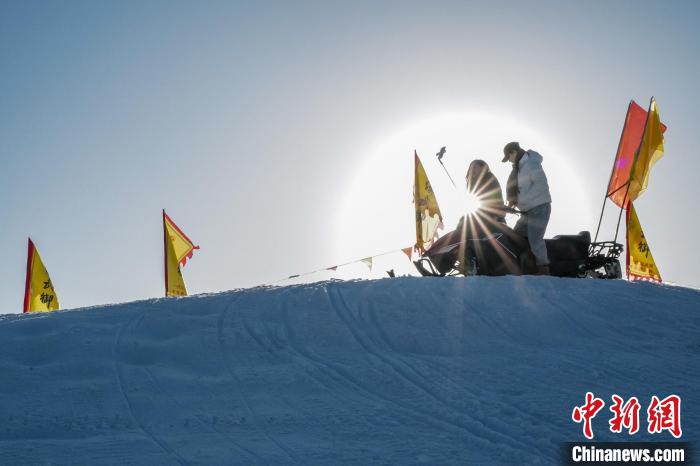 2024年1月7日,游人在敦煌文博冰雪場體驗雪地游玩項目。王斌銀 攝