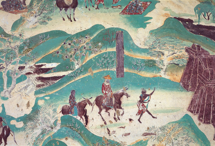 莫高窟第217窟-南壁西側-春山踏青-盛唐。(敦煌研究院供圖)