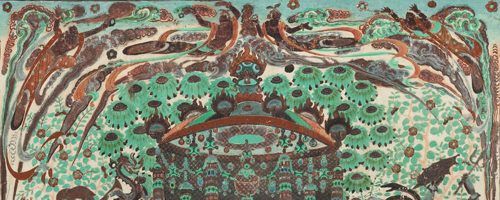 莫高窟第112窟-壁畫-主室北壁-報恩經變之樂舞圖。(敦煌研究院供圖)