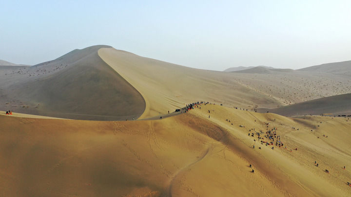 2023年9月11日,游客在甘肅省敦煌市鳴沙山月牙泉景區游覽。新華社發(張曉亮 攝)