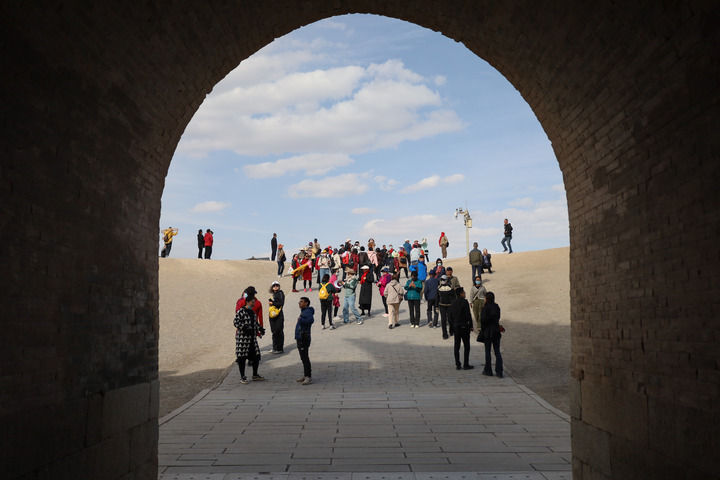 2023年5月10日,游客在嘉峪關關城景區游玩。 新華社每日電訊記者 馬希平 攝