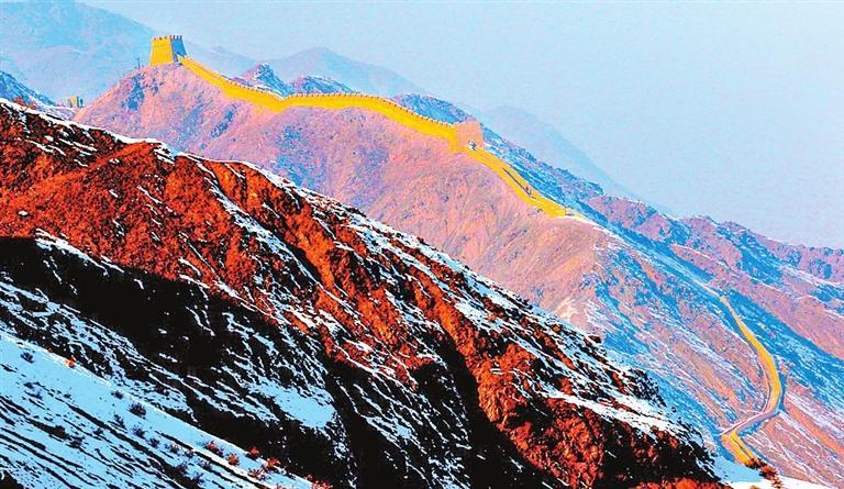 我國的長城與山自古相依相連,有的借山勢呈現出波瀾壯闊的畫面,有的和山體共同延伸向遠處云端,蜿蜒不絕。
