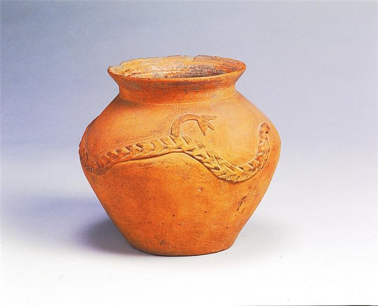齊家文化 凸堆龍紋紅陶罐 甘肅省博物館藏