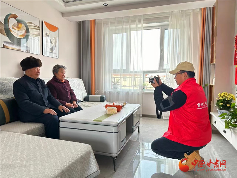 “大爺笑一笑,牽著大娘的手……”攝影志愿者們下村入戶,上門為村民拍攝全家福,用鏡頭為群眾定格幸福團圓的瞬間,留住溫馨美好記憶。從選擇服裝到整理發型,從選取角度到調動情緒,志愿者們忙的不亦樂乎,在他們的引導和鼓勵下,老兩口由開始的緊張到后來的自信從容,一幕幕美好的生活片段被記錄了下來。