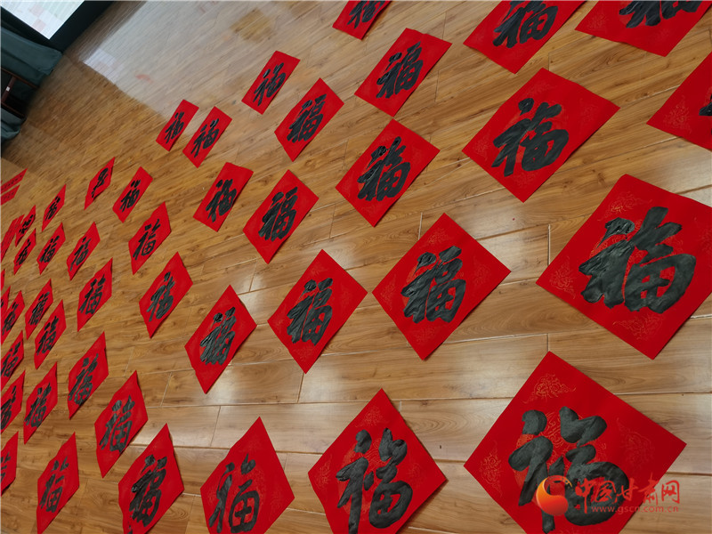 紅福滿地、墨香四溢,群眾們圍攏在書案前,挑選自己喜愛的聯句請書法家書寫。書法志愿者們激情洋溢、揮毫潑墨,將濃濃的新春祝福凝聚在筆端,一行行俊秀蒼勁的書法,一副副對聯,飽含幸福吉祥,寄托美好希望,現場洋溢著濃濃的節日味道。