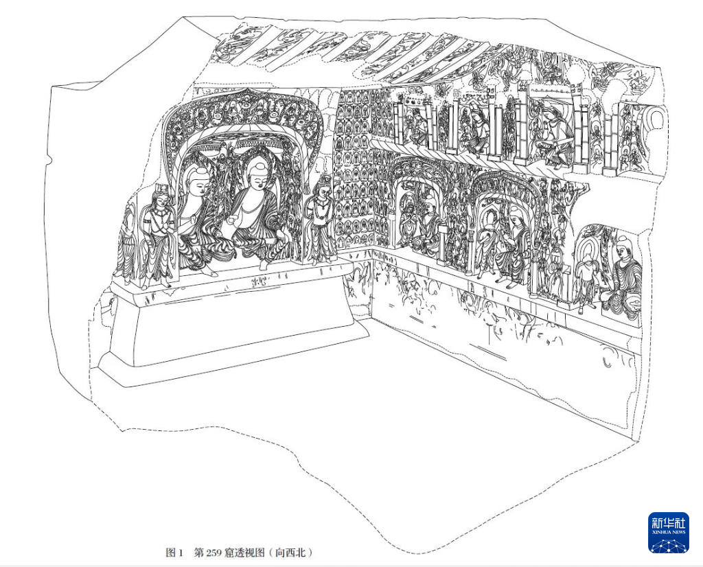 《莫高窟第256、257、259 窟考古報(bào)告》中第259窟透視圖。敦煌研究院供圖