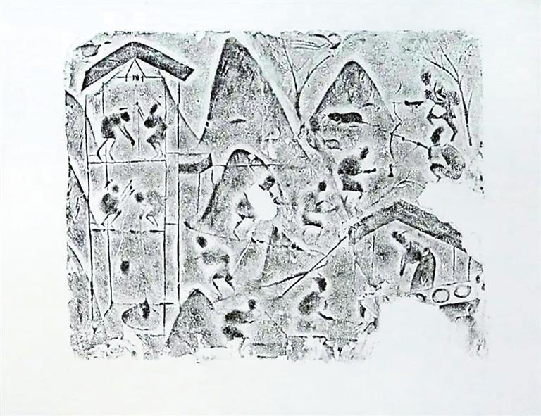 巴蜀地區是中國乃至世界鹽業最早的起源地之一,史載戰國時期巴蜀就已開鑿鹽井、汲鹵煮鹽。秦在此設鹽官,至漢代,四川地區的井鹽制作已經具有一定的規模,分工細致,工具完備。此畫像磚表現了漢代制鹽的情景:畫面左下角有高聳的井架,架上安置有轆轤,用以轉動系在繩索上的吊桶,交替吸鹵,高架旁有一鹵槽,將鹵引入煮鹽的釜內,釜下架設有灶,有人正奮力用扇燒起熊熊烈火。