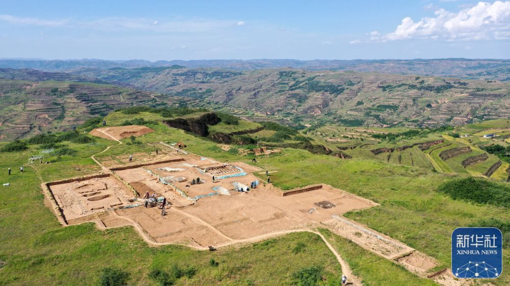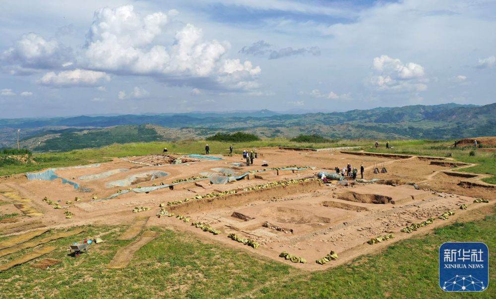 這是2022年6月10日拍攝的甘肅省隴南市禮縣四角坪遺址考古發掘現場(無人機照片)。新華社記者 郎兵兵 攝