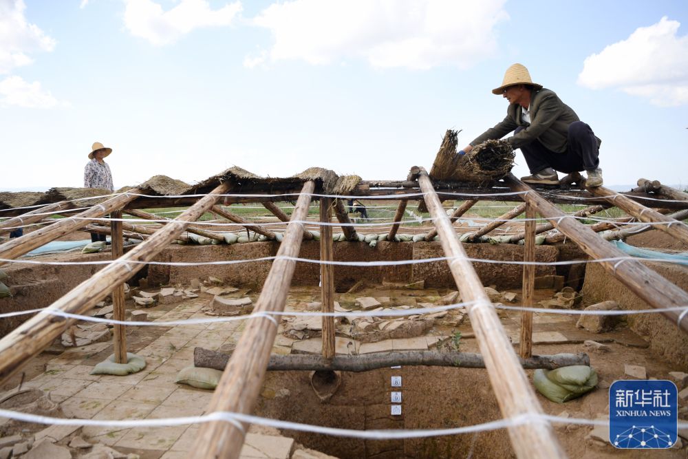 工作人員在甘肅省隴南市禮縣四角坪遺址考古發掘現場工作(2022年6月10日攝)。