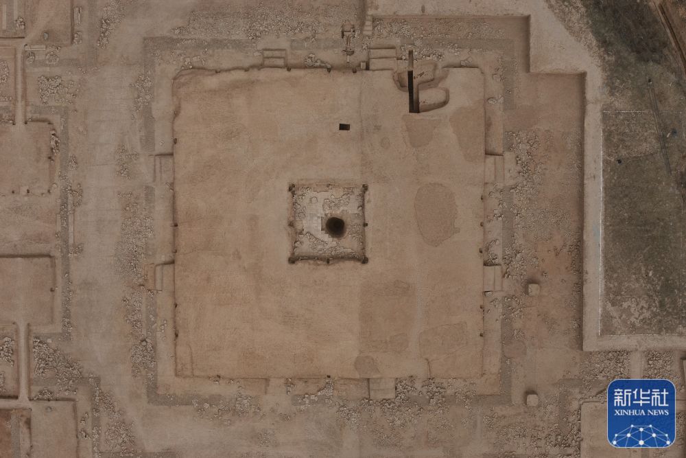 這是甘肅省隴南市禮縣四角坪遺址的中心夯土臺基(2023年11月20日攝,無人機照片)。新華社發(四角坪遺址考古隊供圖)