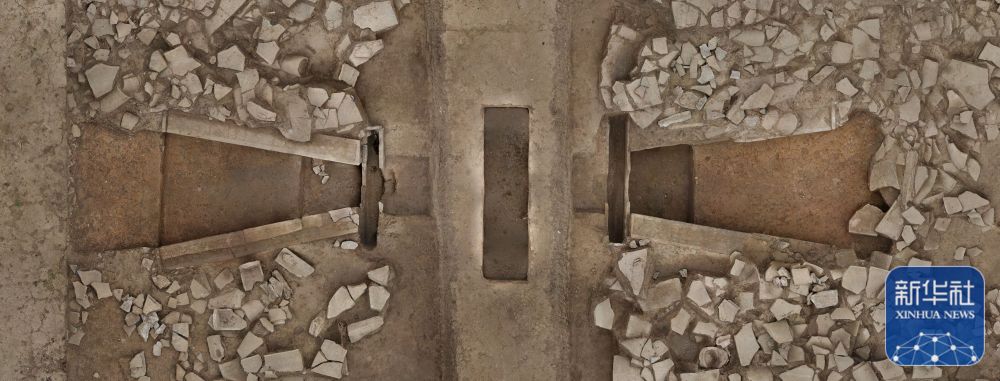 這是甘肅省隴南市禮縣四角坪遺址的排水設施(2024年1月8日攝,無人機照片)。新華社發(四角坪遺址考古隊供圖)