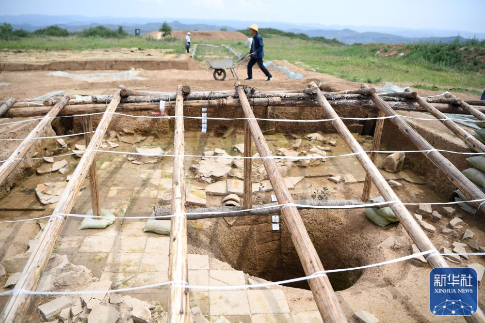 這是2022年6月10日拍攝的甘肅省隴南市禮縣四角坪遺址考古發掘現場。