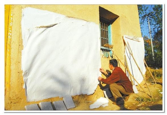 在李生武家的外墻上,我們看到一張張刷在墻上的構樹皮紙,用手輕輕地撫摸著它們,感覺附著了勞作的纖維顯得那么綿軟親切。