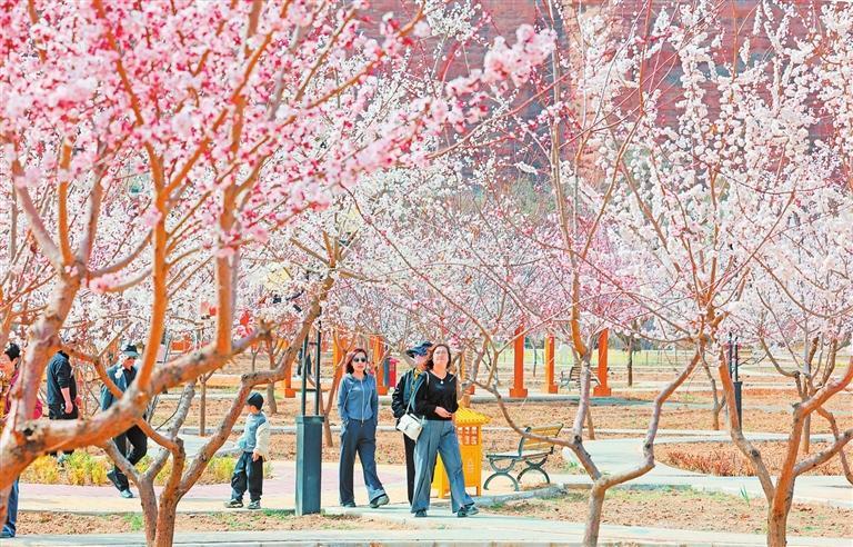 游客在“隴上杏花第一村”東鄉縣唐汪鎮河沿村賞花觀景。 新甘肅·甘肅日報記者 田蹊