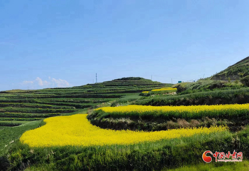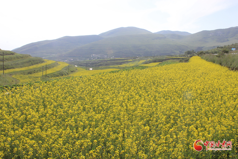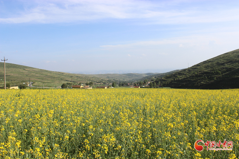 沿著普銀公路來到了被譽為“臨洮最北面的鄉村”的上營瓦窯灘村。這是個寧靜美麗的小山村,秋高氣爽,這里有一大片黃澄澄的油菜花地。一下車,站在普銀公路邊上,一眼望去,田間地頭,成片的油菜花與藍天白云青山交相輝映,村舍藏匿于廣闊的油菜花叢中,蜜蜂、蝴蝶在花叢中翩翩起舞,恰似一幅美麗的田園畫卷。
