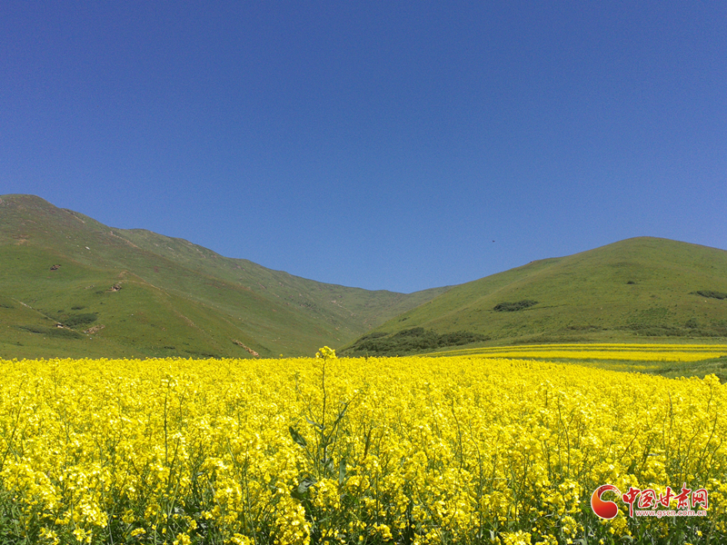大山深處,秋風嬉戲,藍天澄碧,大地金黃,白云悠然。蜂鳴,蝶舞,花香混合著泥土的芬芳,天地猶如一幅散著金光的風景畫,渾然一體,如夢似幻。赤腳踩在綠油油的嫩草上,癢癢的,柔柔的,酥酥的。如母親的懷抱,舒適而安寧。花海更是孩子們的天堂,在里面打滾,摔跤,捉迷藏……揮灑無邪的童真。這時,或在花間嬉戲,或在花徑漫步,或在山野奔跑,或干脆在觸手可及的藍天白云下,枕著花香,靜靜一眠,把自己放逐在原野上,身心兩忘,回歸一個沒有謊言的世界。安靜,正如無邊無際的虛空;澄澈,又像一望無垠的凈土。清新的空氣,寂靜的原野,一切都是那么凈,靜。一切都融入自然,回歸純真。圣潔,澄凈,忘世,忘機,忘我,又那么浪漫。油菜開始開花。一開始是綠葉叢中一點黃,就好像是綠色的海洋里揚著黃色的一桅風帆。接著是倆桅三桅……有一天你會發現綠色的海洋消失了,取而代之的是一片金黃色的閃著耀眼光芒的海平面。微風過處,黃色的波濤此起彼伏,后浪推著前浪。有蜜蜂在花間穿梭,時而飛起,時而停在花蕊中辛勤地采著花粉,工作間隙還不忘嗡嗡地哼著歌。蝶兒翩翩飛舞在花海,兒童急急追蝴蝶。好一幅“兒童急走追黃蝶,飛入菜花無處尋”的畫面。白色蝶兒猶如黃色海面上飄著的白云,黃色蝶兒歇息在花的枝頭,你分不清是蝶兒變成了花還是花變成了蝶兒。山區的油菜花和川區的油菜花又有著迥然不同的風采。