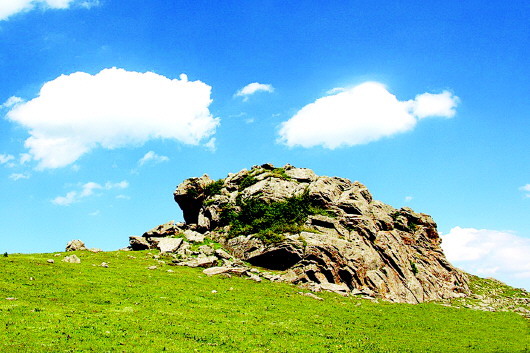 秦人遠去了,只留下那些讓后人至今懷想不已的地名,諸如石鼓山、景墩梁、牧馬梁、上店子、下店子、大卜峪、瓦泉峪等,而尤以石鼓山最為著名,著名得連那部白發三千丈的《水經注》里,都記載著它的故事:“山在梧中聚,有石鼓不擊自鳴,鳴則兵起。漢成帝鴻嘉三年,天水冀南山有大石自鳴,聲隱隱如雷,有頃止,聞于平襄二百四十里,野雞皆鳴。石長丈三尺,廣厚略等,在崖勒,去地百余丈,民俗名曰石鼓。”石鼓山是朱圉山最高峰,海拔2625米,山峰陡峭,人跡罕至,遠望如石鼓,近看似臥牛,茂林幽泉,森秀無比。初春時節,萬物透綠而石鼓白雪皚皚;大雨前夕,飛鳥翱翔而山上煙云彌漫。更為神奇的是,山丘之巔,突兀一石,酷似一頭臥北朝南的耕牛,翹首做犀牛望月之狀,人稱臥牛山。臥牛山石頸之下,有一巨石,其面圓而平,每當正午陽光直射之時,遠遠望去,石面宛如獸皮所蒙,恰如一面威風凜凜的巨型戰鼓,恍惚之中,有如雷聲隱隱而來,民呼之曰石鼓,石鼓山因此得名。石鼓山素來以厚重的人文歷史和優美的草原風光而著稱,尤為聞名的“石鼓擎雪”,自古就是“甘谷八景”之一。千百年來,石鼓山甘愿舍棄繁華,遠離人世,在淡泊寧靜的歲月中,固執而堅定地守望古坡,守望古坡人家。