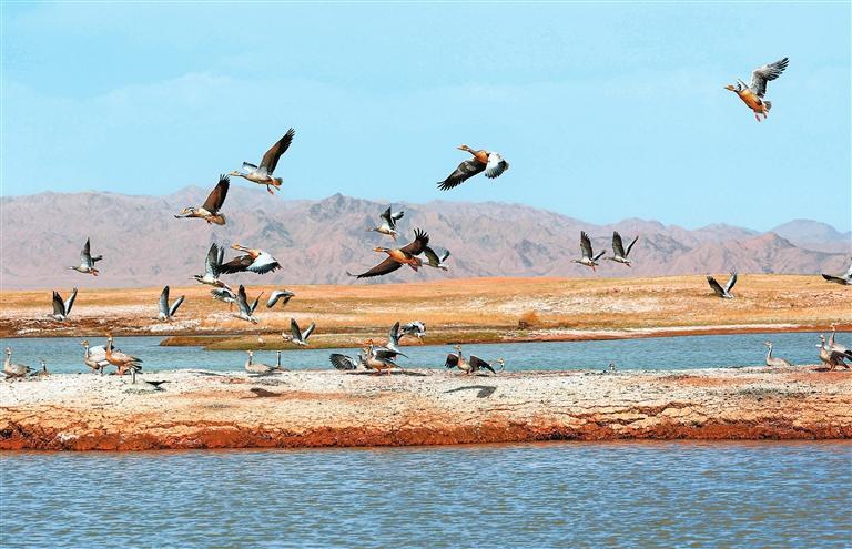 近年來,經過當地有關部門和甘肅鹽池灣國家級自然保護區的有效治理和保護,野生動物種群逐漸增多。每年遷徙至此繁衍生息的鳥類種群和數量不斷增加,時常上演萬鳥翔集的壯觀場景,勾勒出一幅和諧壯美的大自然畫卷。
