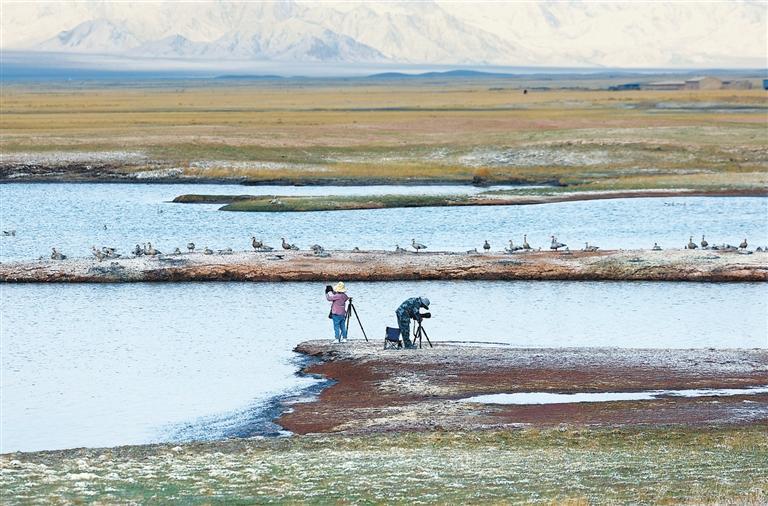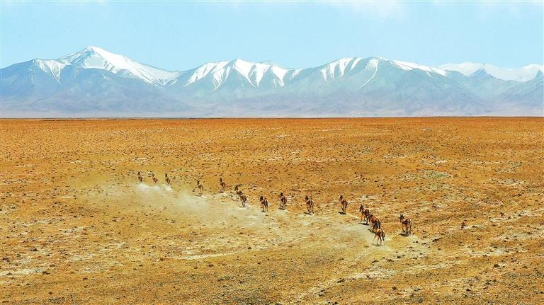 夏日的甘肅鹽池灣國家級自然保護區雪山巍峨,景色壯美。一群藏野驢時而追逐奔馳,時而悠閑覓食;大批北歸遷徙的候鳥自由翱翔,盡顯大自然的和諧之美。