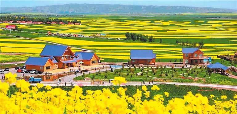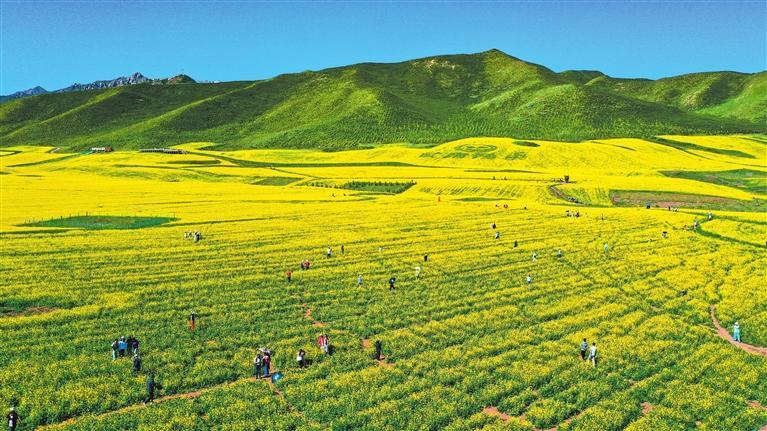 萬畝油菜花海在山間盡情綻放,錯落有致的梯田綿延起伏,遠處白墻黛瓦的村落在金色的田地中若隱若現,那里便是坐落在扁都口外的炒面莊村。