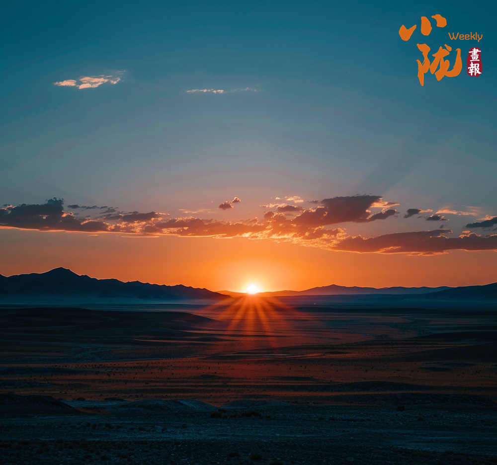 夕陽(yáng)西下,余暉與戈壁融為一體,紅橙色的光芒將整個(gè)地平線染成了一片暖色。在這個(gè)時(shí)刻,戈壁灘的草木們也似乎感受到了晚霞的美麗,它們輕輕搖擺,似乎在與夕陽(yáng)共舞。