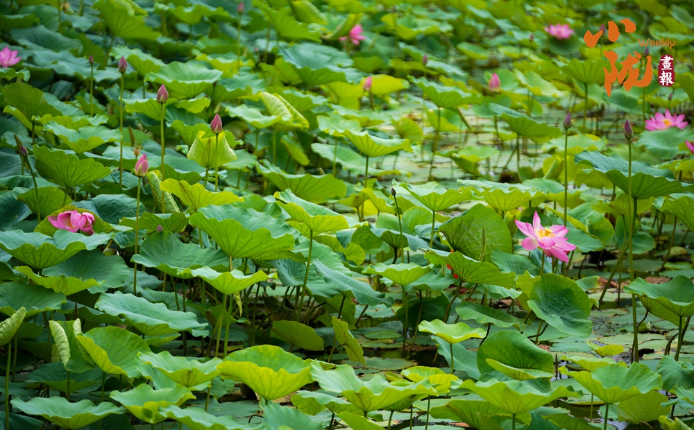 大片的荷葉層層疊疊,一支支荷花婷婷水中,在蓮葉的映襯下展現(xiàn)出更加?jì)擅膭?dòng)人的風(fēng)韻,為炎炎夏日增添了幾分詩情畫意,讓前來觀賞的群眾領(lǐng)略了荷葉田田的生態(tài)美景。