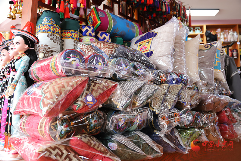 “這個抱枕上的設計非常別致,民族服裝領口和袖口的刺繡也很漂亮,引人注目、創意十足。”幾名挑選民族飾品和工藝品的游客們興高采烈地議論著。