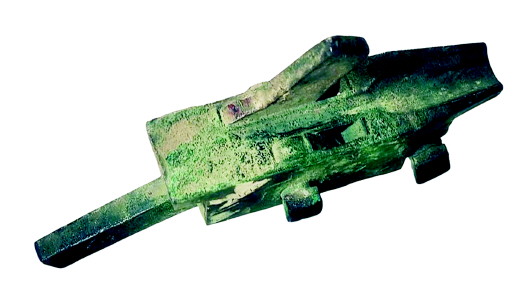 出土的青銅弩機共三件,制作精巧,外觀平整光潔。大件長14.5厘米,寬12.8厘米,重量為1031.9克。中件長14.9厘米,寬7.4厘米,重量為540克。小件長10厘米,寬4厘米,重量為11克。這三件弩機除了小件稍有點殘缺外,其余兩件基本完整。三件弩機造型沉穩,小巧玲瓏,且機廓都由青銅鑄造,這在已出土的弓箭類文物中比較罕見。經過專家鑒定,這是三國時期魏蜀征戰天水時的遺留文物。