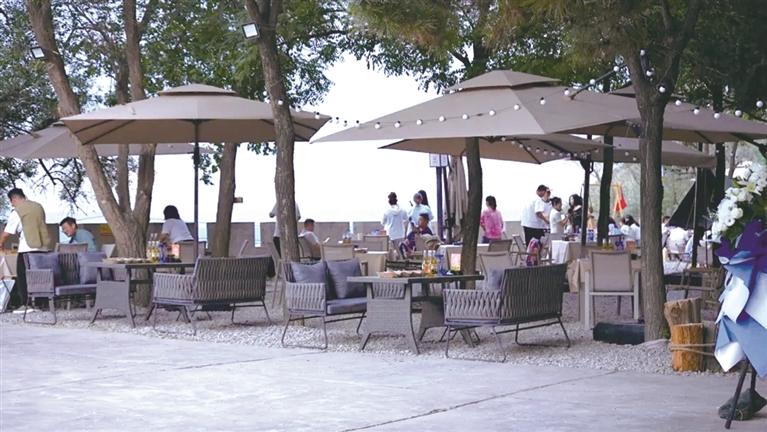 除了優美的環境外,園區內文旅業態也十分豐富,有望河樓、紫云樓、怡翠亭三處高端餐飲,主打餐飲品牌“如意樂宴”,共有5個各具特色的主題包廂和1個文創餐廳,可以提供環境幽雅的高端私享空間,適合商務宴請、親朋聚會。望河樓內還有露天火鍋和咖啡酒吧,帶來“白咖夜酒”的浪漫體驗。