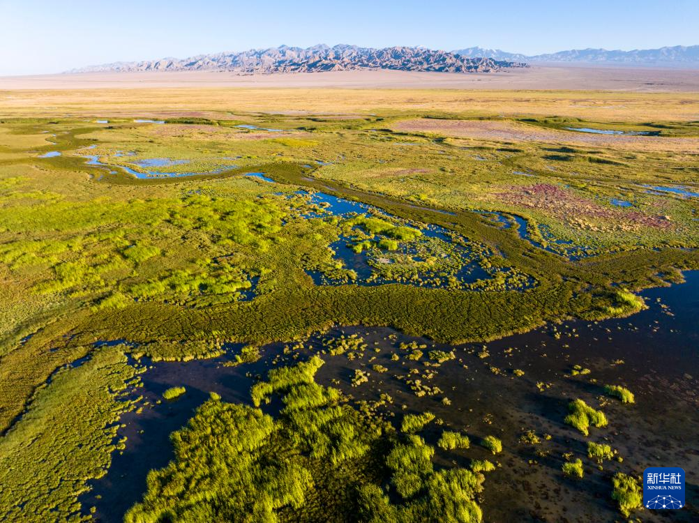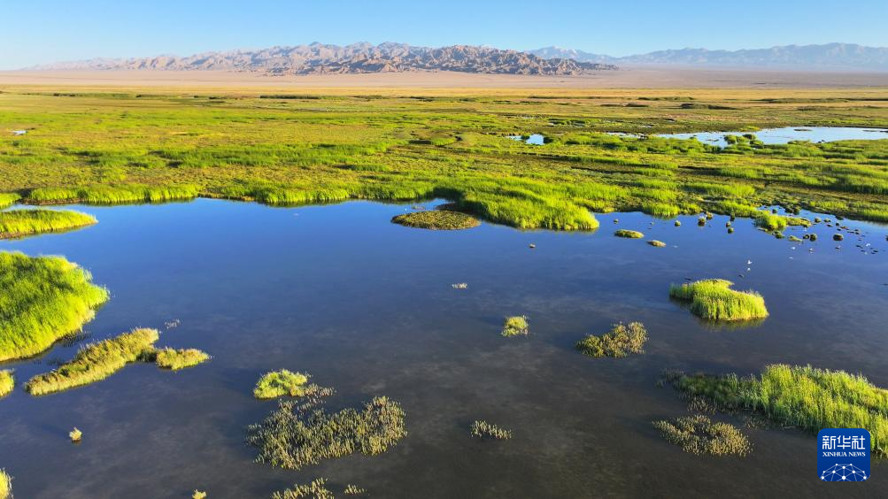 7月31日拍攝的大蘇干湖濕地景色(無人機照片)。新華社發(高宏善 攝)