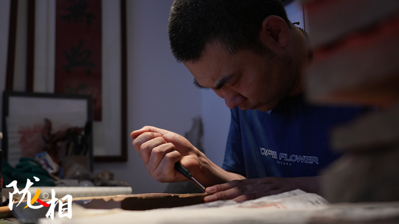 已過不惑之年的李安樂,是靜寧縣一名普通美術教師,在技藝的精巧與熱愛的加持下,獲得了市級傳統雕版印刷非遺傳承人稱號。