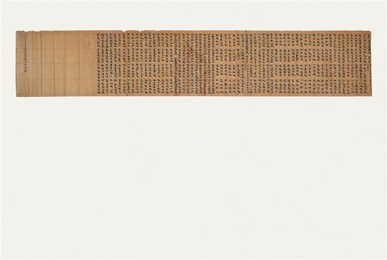 《法句經(jīng)》,前涼,卷軸裝寫本,黃麻紙,出自敦煌莫高窟藏經(jīng)洞。以隸書繕抄《道行品法句經(jīng)》第三十八、《泥洹品法句經(jīng)》第三十九兩品經(jīng)文,前有裁切痕跡,題記“升平十二年(公元368年)沙彌凈明。咸安三年(公元373年)十月廿日沙彌凈明誦習法句起”,為沙彌凈明的兩次誦經(jīng)記錄。該文物是所知現(xiàn)存敦煌文獻中最早的經(jīng)卷寫本,其書法藝術(shù)展現(xiàn)了“經(jīng)書體”楷法初期的特有風姿。