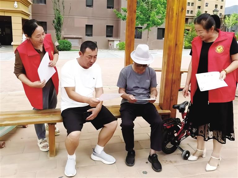 志愿者給小區居民發放《中元節文明祭祀倡議書》受訪單位供圖