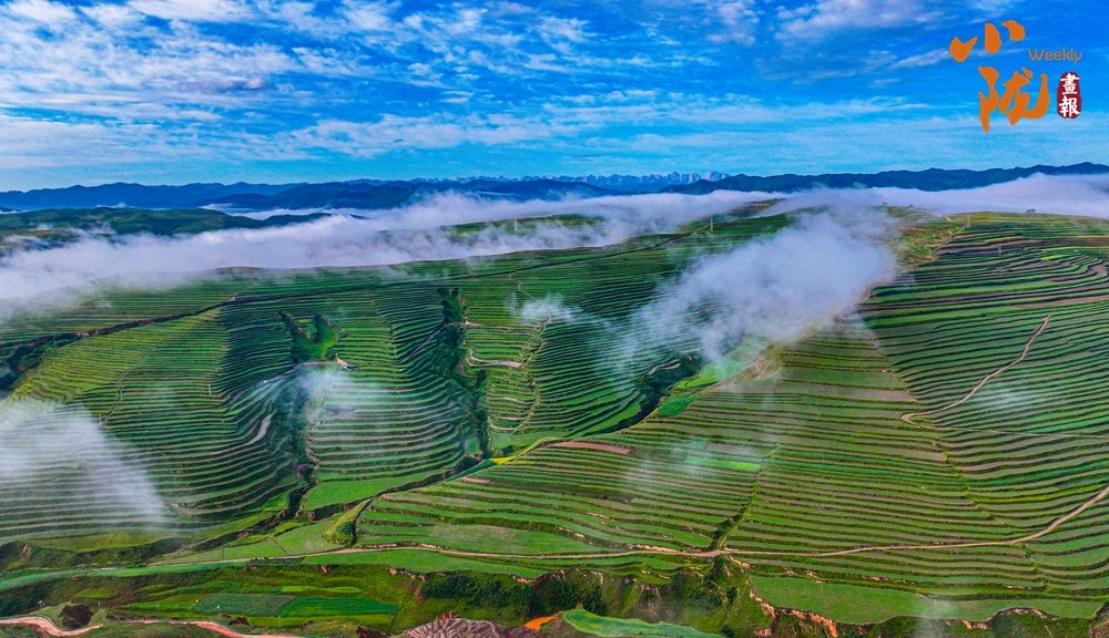 雨后放晴,山谷中的霧氣匯集升騰,化作云海環(huán)繞山峰,光線柔和空氣清涼,放眼望去,白云、青山、洮河、云海構(gòu)成唯美畫(huà)卷。