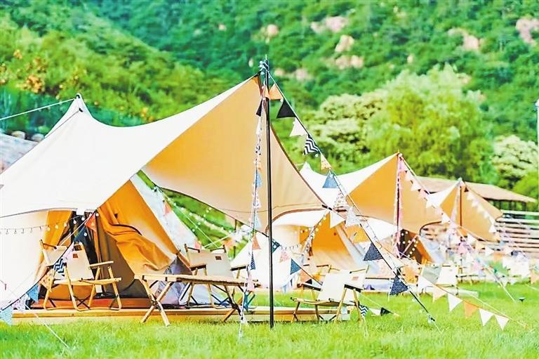 嗅著泥土和綠草的清香,享受久違的愜意。在露營基地來一場豐盛的下午茶,閑聊、玩桌游;當夜幕降臨,來一場煙火味滿滿的草坪燒烤,各種美食鋪在桌上,露營的氛圍感被拉滿。不僅如此,周邊還有太多文旅場景可供選擇,游客可到藥王洞中醫藥養生堂體驗藥茶、藥膳,在杜梨峁觀景臺祈愿打卡。