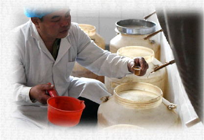 占盡了天時地利的四門醋,得到了民間“家釀深藏度春秋,紅杏由來不出墻”的美譽。其實,在四門鎮,幾乎人人都是釀醋能手。釀造時大多以祖方百味中藥踩曲,用麥麩皮作主料,加入雜糧和藥渣,再添上泉水或井水,入陶缸發酵。