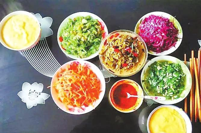 百人百心病,百人百口味。現在的人吃馓飯,對菜品的要求越來越高了,除了酸菜,人們大多還會調一些涼菜,或炒一些菜,蘿卜的,肉丁的,山野菜的,虎皮辣子的,滿滿地擺上一桌子,如錦上添花,令人食欲大增。