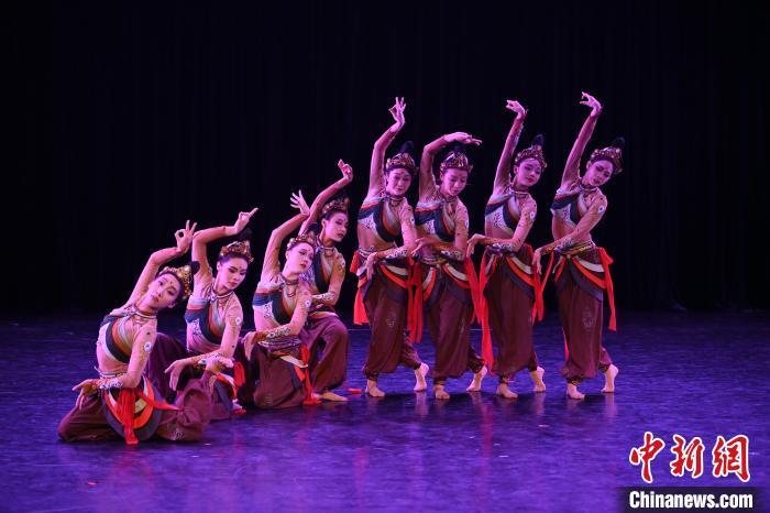 9月6日,由甘肅省人民政府臺灣事務辦公室、西北民族大學聯合舉辦的“‘尋甘同味·舞樂敦煌’第七屆臺灣大學生敦煌文化研習營”結營式在甘肅蘭州西北民族大學舉行。來自臺灣中國文化大學、臺灣藝術大學、臺灣體育運動大學與西北民族大學的65名師生在結營式上,合作進行了舞蹈音樂創作成果展演,展示了傳統與現代舞蹈的完美融合。圖為當日進行的舞蹈音樂創作成果演出。中新社記者 李亞龍 攝