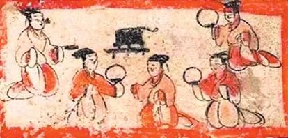 在敦煌及嘉峪關魏晉墓中,可以看見敦煌人跪坐而食,繼承著古老的傳統。到了這一時期,大部分已是盤腿席地而坐,從壁畫中可以看到人們或盤腿圍坐在炕上,或在一種和食床一樣高的寬長條凳上盤腿或跪坐。這種坐法的優點是避免了因久跪大腿血液不易流通而發麻的弊端,也是受了少數民族的影響。五代到宋時期,敦煌已出現了鼓腰凳,人們已經垂足坐在上面進餐。