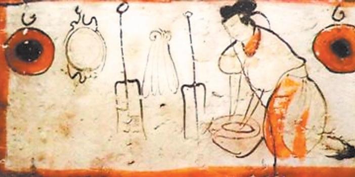 嘉峪關魏晉墓磚畫《烤肉煮肉圖》