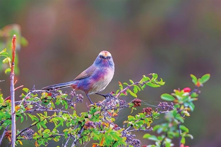 金秋時節,祁連山秋風浸染,活潑可愛的花彩雀鶯歡唱枝頭,在花叢中覓食,在清澈的溪邊嬉戲。花彩雀鶯是一種毛茸茸偏紫色的雀鶯,種群數量穩定,因此被評價為無生存危機的物種。 奔流新聞·蘭州晨報通訊員 華亮 焦方寧 攝