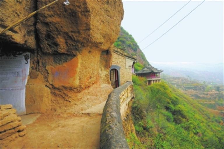 上山的小路濕滑,前半截還有石階,后面就成了碎石路。上到半山腰的四個小廟,就是當時胡宗南棲身的山洞。