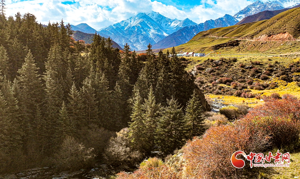 10月9日,在祁連山國家公園甘肅省張掖市肅南裕固族自治縣大河鄉段,一幅秋日畫卷在藍天白云的映襯下徐徐展開。這里,雪山、森林、草原、濕地、峽谷、河流等多種自然景觀交相輝映,美不勝收。