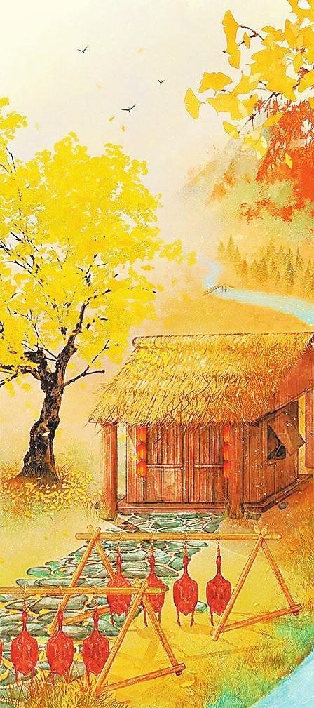 “無邊落木蕭蕭下,不盡長江滾滾來”,霜降的第二個五日,大自然中,草木已經開始凋零,到處都是枯黃的落葉。這是因為隨著氣溫下降天氣變冷,植物的生長活動逐漸停止,葉子也逐漸枯黃并最終脫落。于是,古代的人們會利用這個時節砍伐樹木,以備過冬之需。他們會將木材燒成炭來保暖取暖,或用來作為烹飪的燃料。